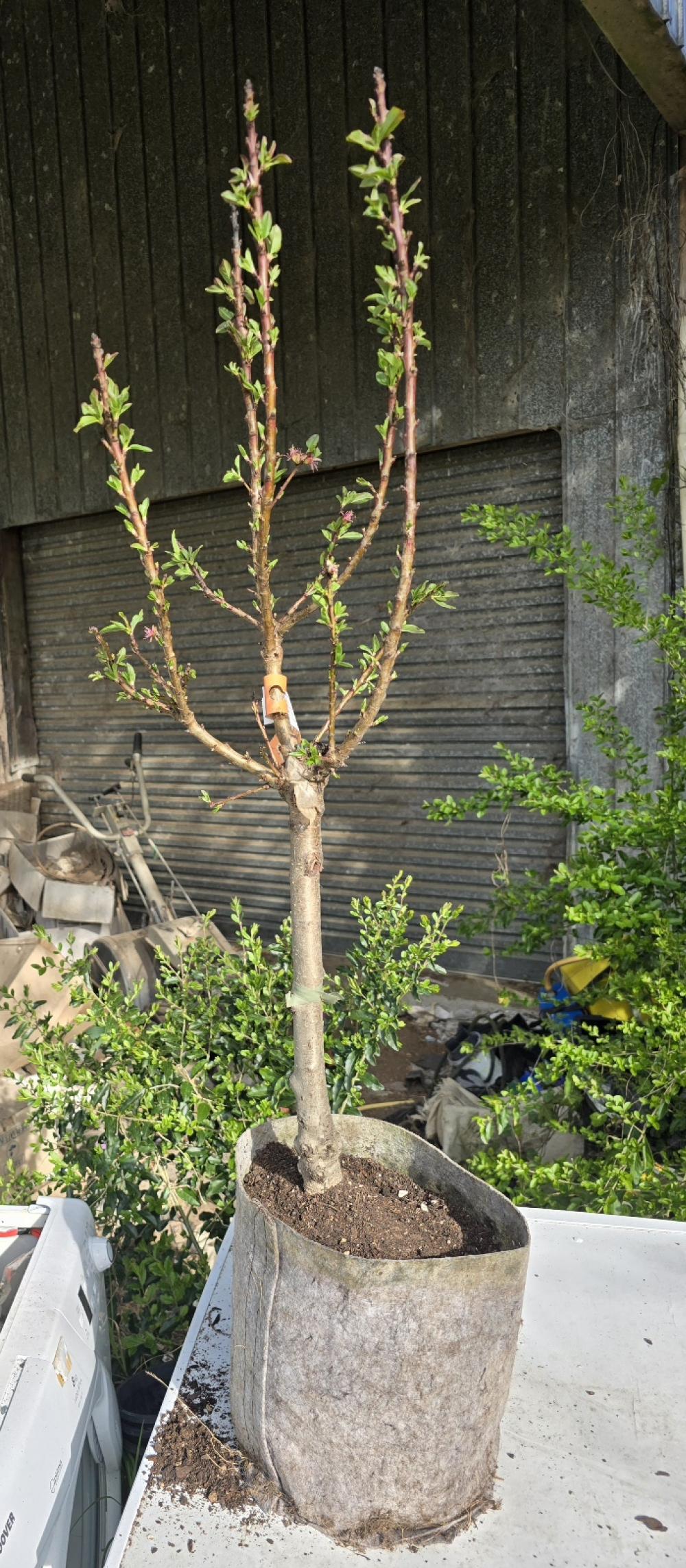A delightful little tree which is both highly ornamental and very productive. Beautiful pink spring blossom develops into medium sized sweet nuts enclosed in soft, well sealed shells.